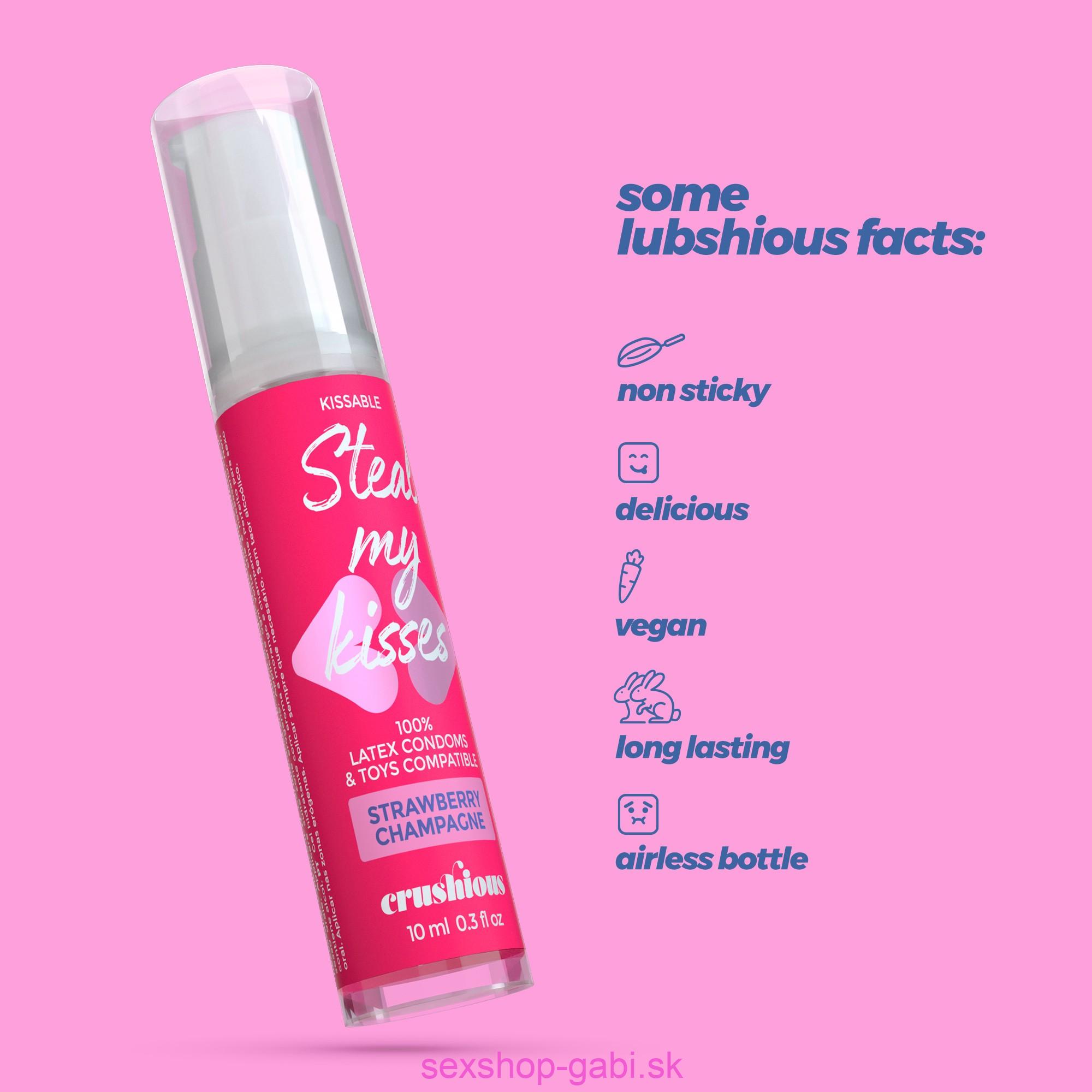 Úvod »Lubrikačné gély» CRUSHIOUS STEAL MY KISSES s príchuťou jahody a šampanského 10 ml